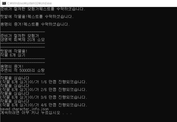 Console.WriteLine("saved character_info.json");